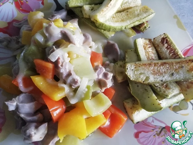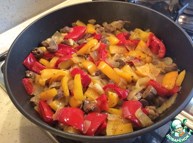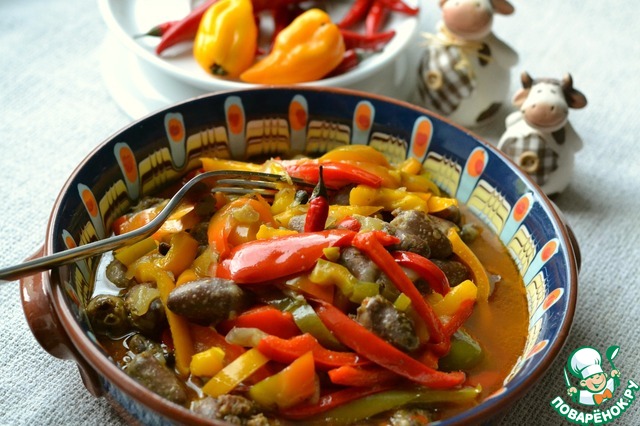 Рагу из перца с куриными желудками