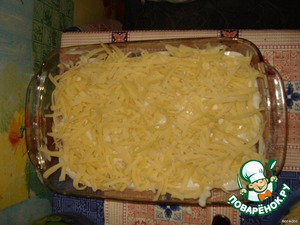 Посыпать половиной тертого сыра.