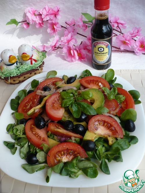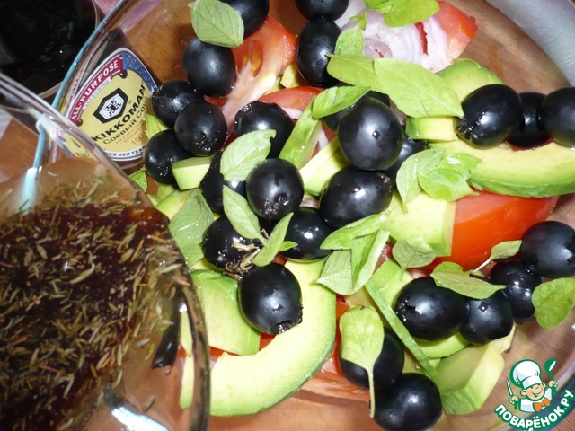 Приготовим заправку для салата: смешать соевый соус ТМ "Kikkoman" с оливковым маслом, добавить тимьян и черный молотый перец по вкусу.