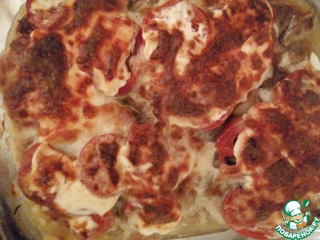 Режем мацареллу пластинами и выкладываем поверх помидоров. Отправляем в духовку на 180-200градусов, в зависимости от мощности вашей печки. Ждемс 30 минут. Готово))Подавать можно со свежими овощами, а для мужчин можно и с картофельные пюре👌