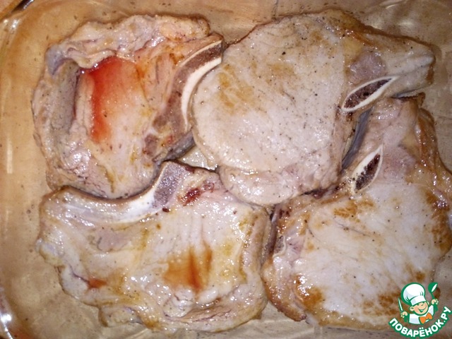 Мясо натираем солью и перцем по вкусу. На сковороду наливаем растительное масло разогреваем и выкладываем мясо. Обжариваем с обеих сторон мясо, так, чтобы образовалась небольшая корочка. Делаем мы это для того, чтобы мясо было сочным, а не высохло в духовке и не превратилось в жесткое))Выкладыааем мясо со сковороды в подготовленную форму.