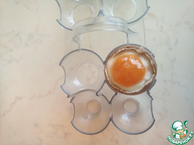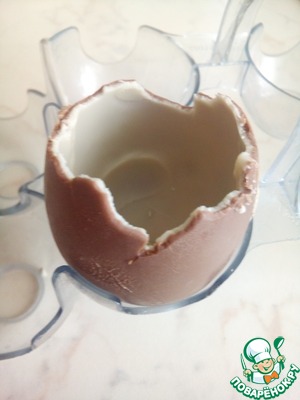 С помощью ножа шоколадные яйца колем и вытаскиваем капсулу с игрушкой. Края у яиц должны быть не ровными.
