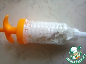 Сливки соединяем с творожным сыром и сахаром. Взбиваем до полного растворения сахара и получения кремообразного состояния. Наполняем кремом кулинарный шприц или мешок.