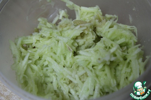 Яблоки (я брала Семеренко) очистить, натереть на крупной терке и сбрызнуть лимонным соком. Аккуратно перемешать.