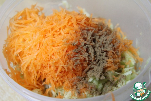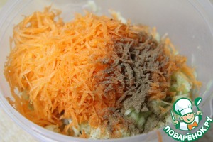 Добавить натертую морковь (я терла на мелкой терке), корицу, сахар (если пожелаете. Я не добавляла)