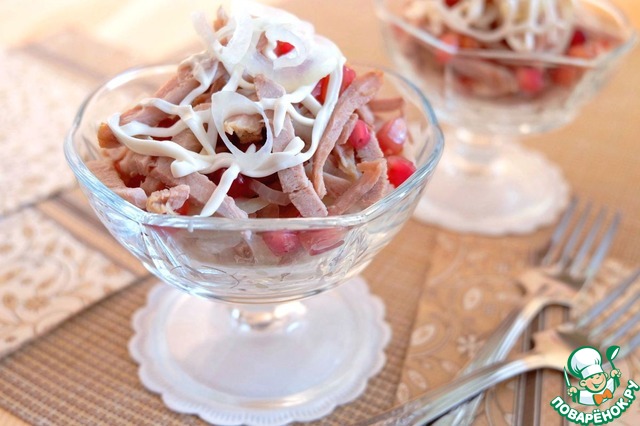 Салат "Гранатовый". Простой и вкусный салат с насыщенным мясным вкусом.