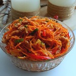 В это время морковь почистить и натереть на "корейской" терке.