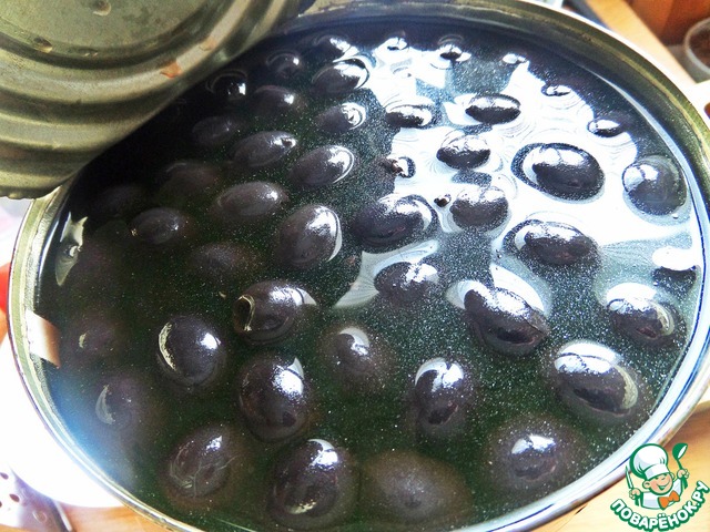 Маслины у меня уже без косточек. Если у Вас с косточками, надавить стаканом и вынуть косточки.