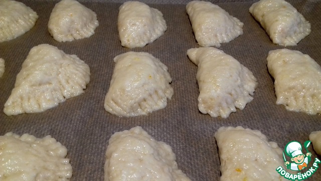 Выложить заготовки на противень, застеленный бумагой для выпечки. Выпекать при 180 градусах 10 минут без конвекции и 7-10 минут с конвекцией. Духовки у всех разные, поэтому готовность можно определить по нежному румянцу готовых печений.