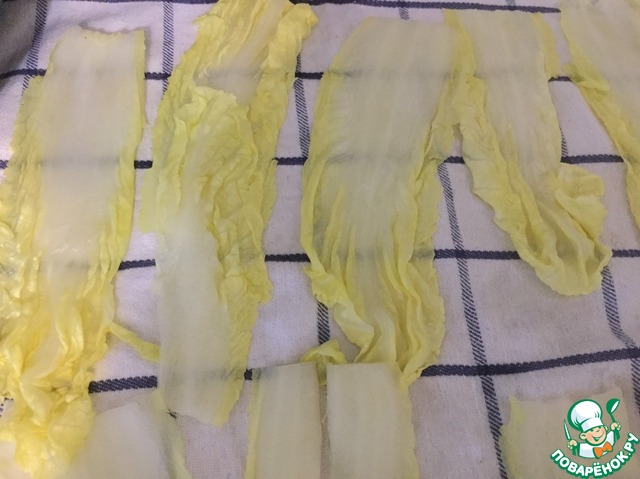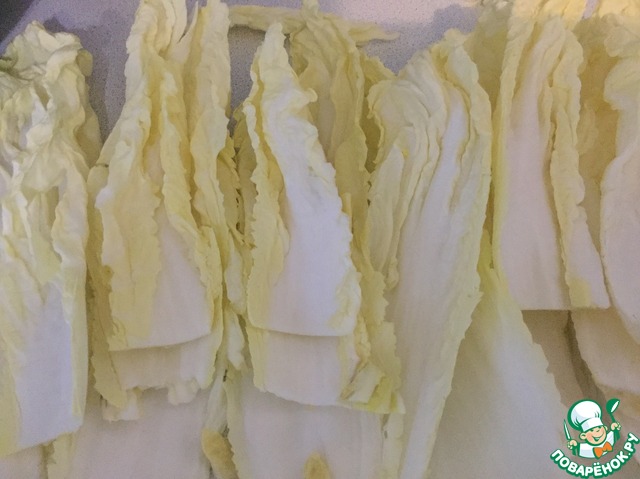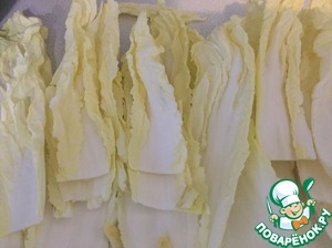 Теперь капуста: отрезаю то место, где соединяются листы, отделяю их друг от друга.