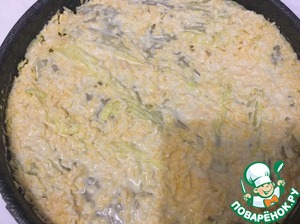 Верхним слоем идёт соус. Ставлю на 25 минут при температуре 180 градусов и ещё минут 10 при температуре 235 градусов.