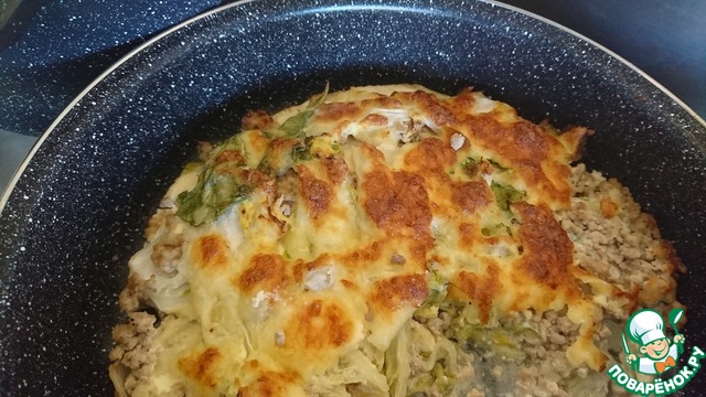Этот рецепт - некая альтернатива голубцам. Я не очень люблю закручивать фарш в капусту, а вот такой вариант сочетания этих продуктов мне больше понравился! А то, что сверху запекается сырный соус, придаёт необычный вкус, казалось бы обычным голубцам.