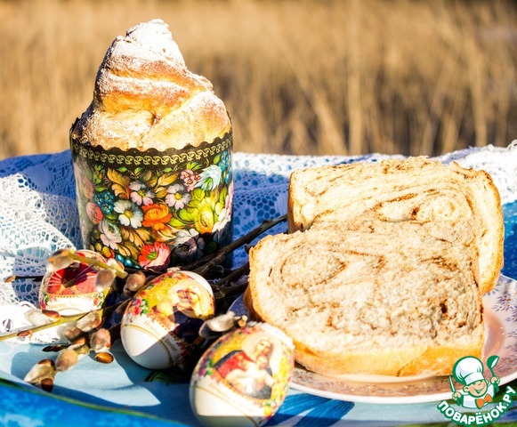 Нетрадиционный внешний вид, а также оригинальный узор внутри, удивят всех еще до того, как кулич будет попробован. А нежная пышная структура мякиша и неповторимый вкус выпечки, окончательно убедят всех в Ваших кулинарных способностях.