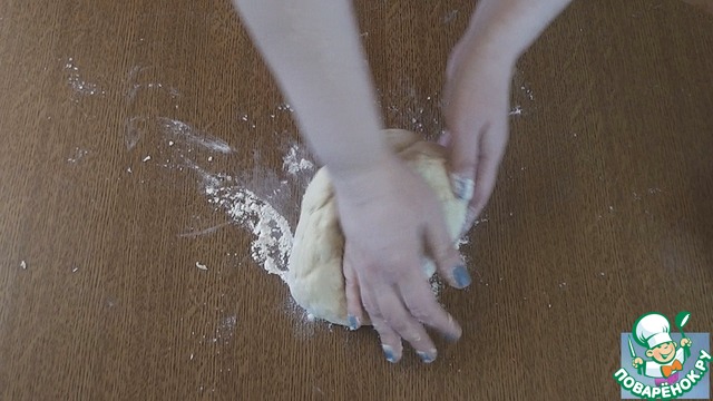3. Смешиваем с подошедшей опарой и начинаем постепенно вводить просеянную муку. Как тесто загустеет, выложить на стол и замешивать руками. Положить в миску, слегка смазанную растительным маслом. Накрыть и убрать в тёплое место на 1.5-2ч