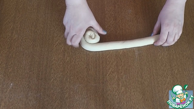 5. После - сворачиваем "улитку" ("улитка" должна соответствовать диаметру дна формы).