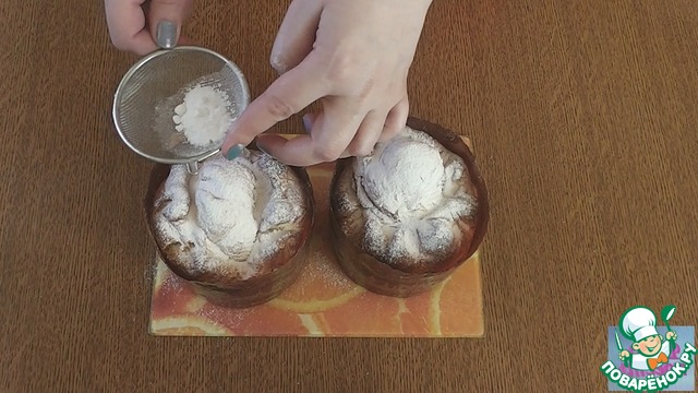 10. Остужаем куличи на решётке, посыпаем сахарной пудрой. Кулич должен отстояться приблизительно 5-6 ч, прежде чем его можно будет резать.