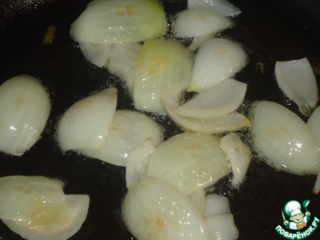 Масло растительное разогреть, обжарить лук около 2 минут.