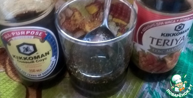 • Смешать растительное масло, соевый соус Kikkoman, маринад Терияки Kikkoman, специи и соль