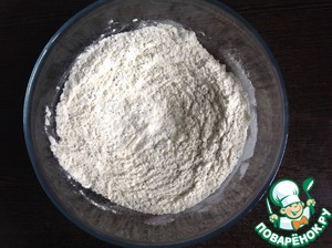 Постепенно добавить смесь муки и замесить однородное тесто.