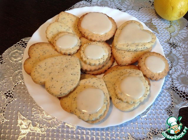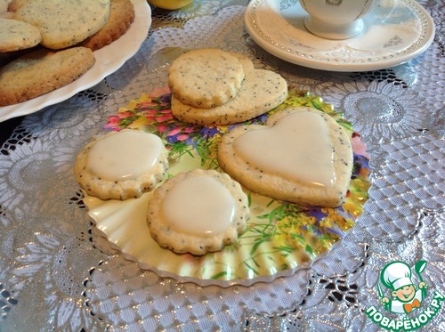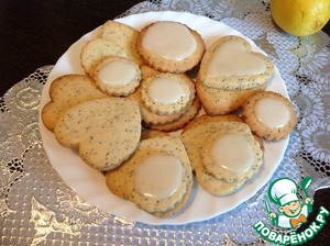 Чтобы сделать глазурь, смешайте лимонный сок и сахарную пудру до однородного состояния. Количеством сока и сахара можно варьировать для получения желаемой консистенции. Покрыть глазурью остывшее печенье.