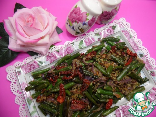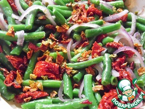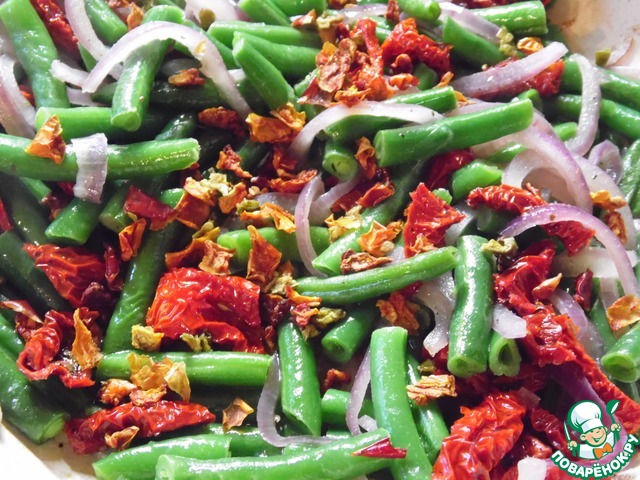 Салат-гарнир со стручковой фасолью и вялеными томатами как нельзя лучше подойдет к постному столу и разнообразит ваше меню. Такой салат можно подавать как в теплом, так и в холодном виде.