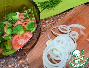 Брокколи отварить, 5 минут. Отцедить, остудить в ледяной воде.