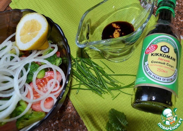 - Соевый соус (легкий от ТМ Киккоман) — 1 ст. л.