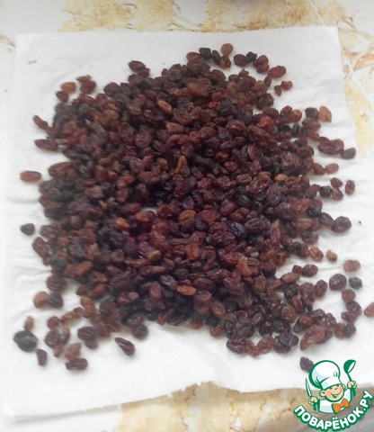 Подготавливаем изюм, цукаты и орехи. Изюм и цукаты промываем, заливаем кипятком на несколько минут и обсушиваем на салфетке. Орехи (любые) очищаем и измельчаем, но не в муку, а чтобы чувствовались кусочки орехов.