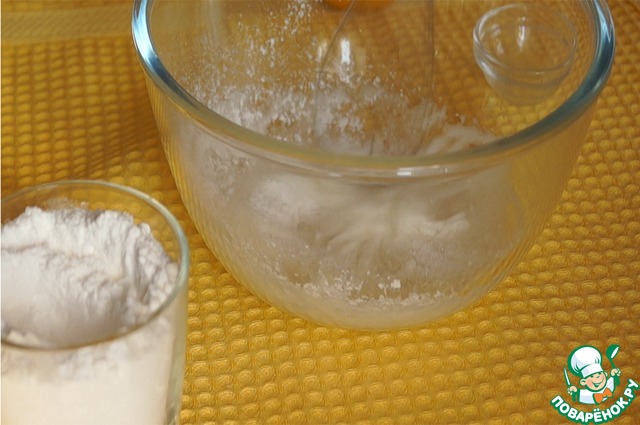 4.. Готовим глазурь: белок слегка взбить до образования пены, далее постепенно добавляем сахарную пудру. В конце влить сок лимона, перемешать