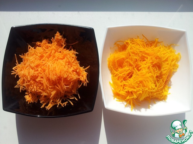 Морковь и тыкву натереть на терке.