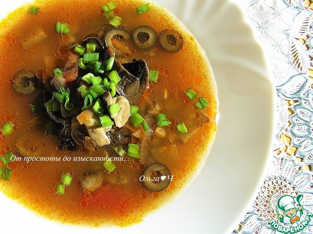 Вкусный сытный супчик. Интересен он тем, что готовится из трёх видов грибов (сушеных, солёных и свежих). Один из наших любимых супов, причём не только во время Поста. На его необыкновенный аромат мгновенно сбегаются все члены семьи и обязательно просят добавки.