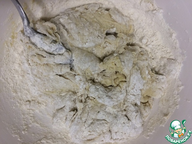 Всыпать просеянную муку и замесить тесто.