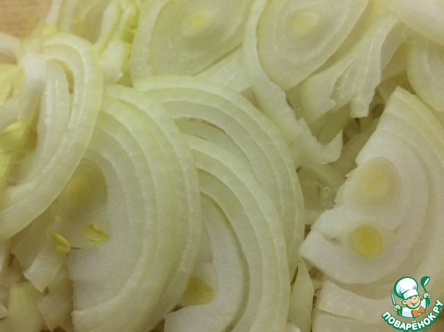 Нарезать лук полукольцами.