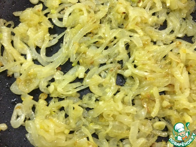 И обжарить его на среднем огне до прозрачности. Следить, чтобы лук не подгорел.