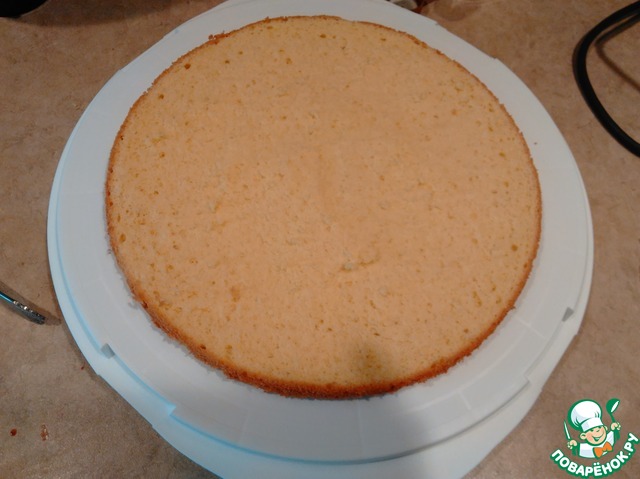 Как и все бисквиты, рекомендую вам испечь его вечером, так его легче разрезать и времени уйдет очень мало. Как я уже сказала, торт не требует длительной пропитки, вы можете хранить бисквит до нужного момента и когда гости выехали из дому, начинать пропитывать и собирать. Итак, то чего я не знала. Чтобы корж получился ровным, перед тем как выложить на него тессто, нужно на мин 10 поставить форму в котором будем выпекать бисквит в морозилку и не в коем случае не смазывать бока!!! Низ застилаем пергаментом, ровно по кругу (нарисовать и вырезать).