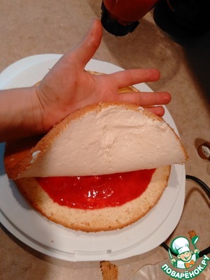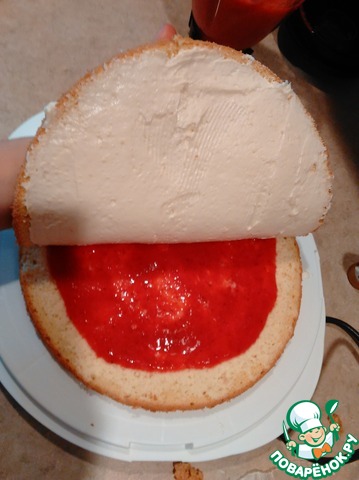 и коржи пропитывала клубничным соком с сахаром.