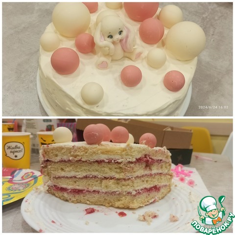 Так как торт был на праздник, разрезик не сделала... Но обещаю, он вас не разочарует!