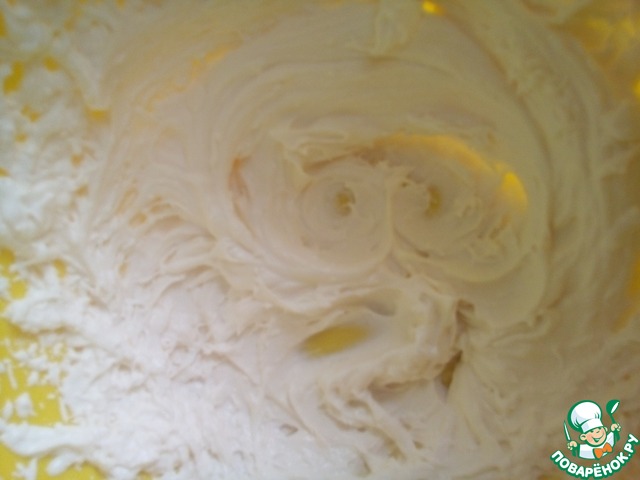 Готовим крем: берем творожный сыр, сливки и сахар и взбиваем.