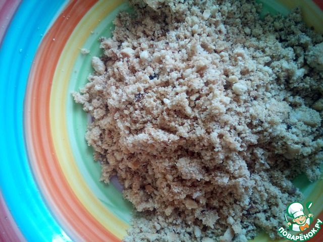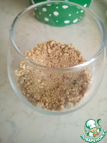 Печенье измельчаем. Я это делала в измельчителе, можно на мясорубке или в ручную скалкой.