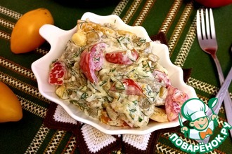 ДОРОГИЕ ПОВАРЯТА, ВЫ ВСЕГДА МЕНЯ УДИВЛЯЛИ своими рецептами. Позвольте угостить сейчас и Вас. Это мой первый рецепт, поэтому не судите строго. Рецепт взят с французского сайта и уже 8 лет появляется на наших тарелках. Надеюсь, появиться и на ваших. Всего лишь 5 продуктов, вкус которых сливается в одно, чтобы во рту создать яркое сочетание текстур и гармонию. После многих экспериментов: в несколько мгновений Вы сможете удивить Ваших близких за праздничным столом (альтернатива для обеденного потчевания будет тоже выложена). Этот салат сходен с Леночкиным Silverina1, она меня на это и вдохновила.