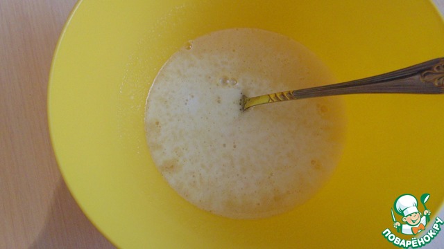 Добавить соду, перемешать. (Если разрыхлитель, то - на этапе добавления муки )