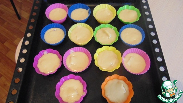 Заполняем тестом формочки, ставим в разогретую духовку. Выпекаем при температуре 200 градусов 20 минут.