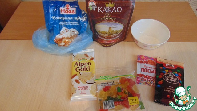 - Посыпка кондитерская (Любые посыпки кодитерские, конфетки мелкие, жевательный мармелад) — по вкусу