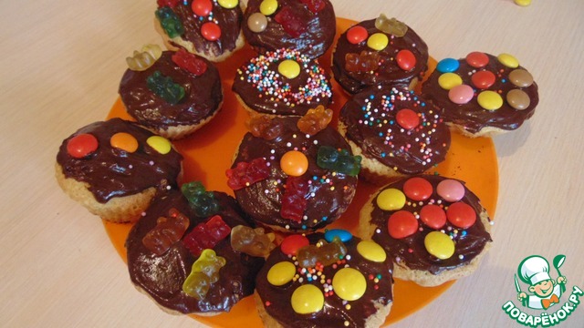 Украшаем наши капкейки по своему вкусу: посыпкой сахарной, цветным драже, жевательным мармеладом и т. п.