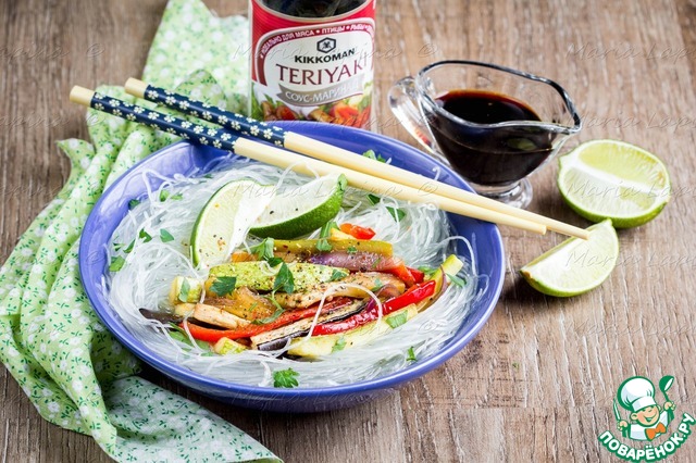 Рецепт «Фунчоза с запеченными овощами и бульоном»:
