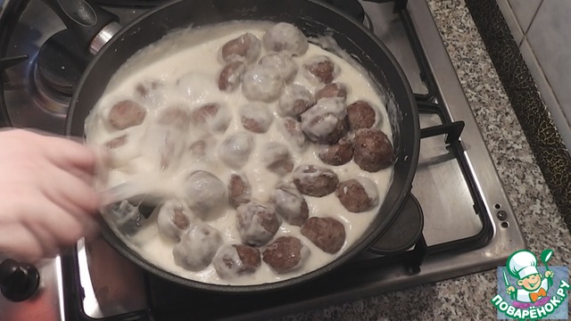 Выкладываем запеченные фрикадельки в соус, перемешиваем, накрываем крышкой и томим на медленном огне еще 3 - 5 мин.