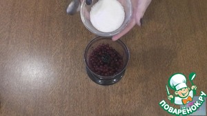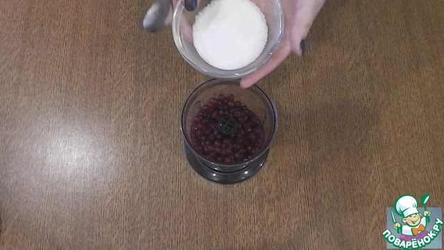 Делаем брусничный соус. Для этого смешиваем в блендере сахар с брусникой. Можно взять клюкву. Если Вам не нравится кожица от ягод, пропустите через сито.