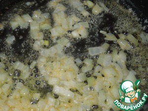 В мультиварке на режиме "Жарка" растопить сливочное масло и добавить оливковое. Лук порезать кубиками, чеснок пропустить через пресс. Выложить лук и чеснок в мультиварку и обжаривать до золотистого цвета. Режим "Жарка" можно заменить "Выпечка".