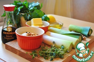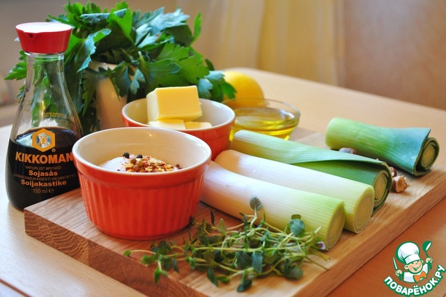 Тем временем приступим к приготовлению лука-порей. Нам понадобятся следующие продукты:
