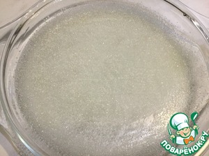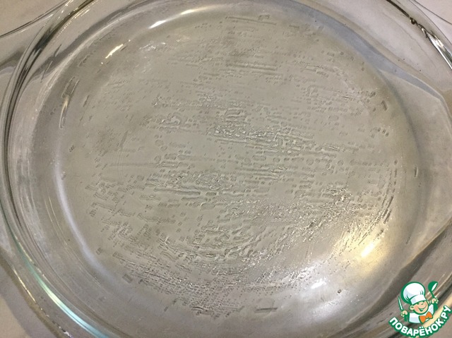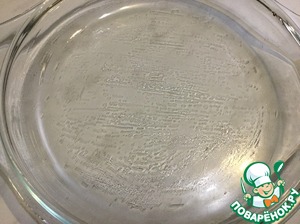Смешала муку, сахар, яйцо, потом добавила молоко и отставила в сторону тесто, которое по консистенции получилось как для тонких блинчиков, минут на 10. Для формы я взяла крышку от стеклянной кастрюли для СВЧ, которая 22 см диаметром и примерно 3-4 см в высоту. Смазала форму маслом...